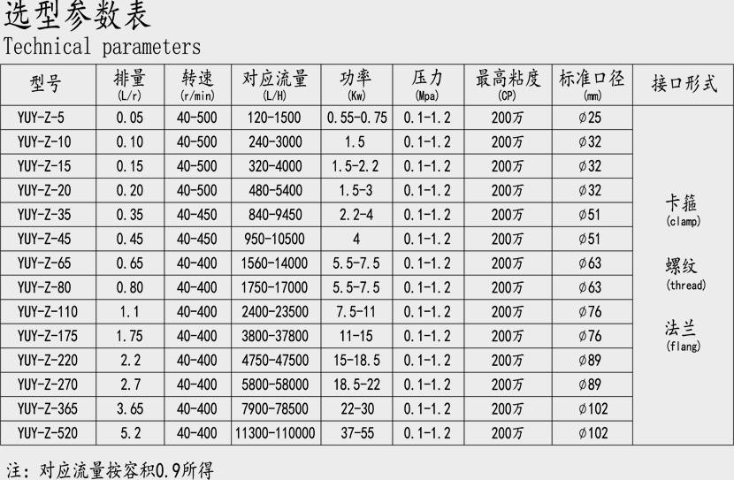 2、實際流量: 實際流量是指衛生轉子泵在工作過程中考慮到泄露損失,即容積效率。一般容積效率在80-90%。實際流量=理論流量x容積效率。